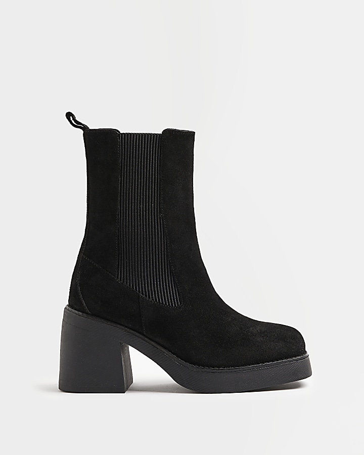 Black suede heeled clearance chelsea boots, Pippie Black Low Heel Suede Black Ankle Boots Dune London clearance