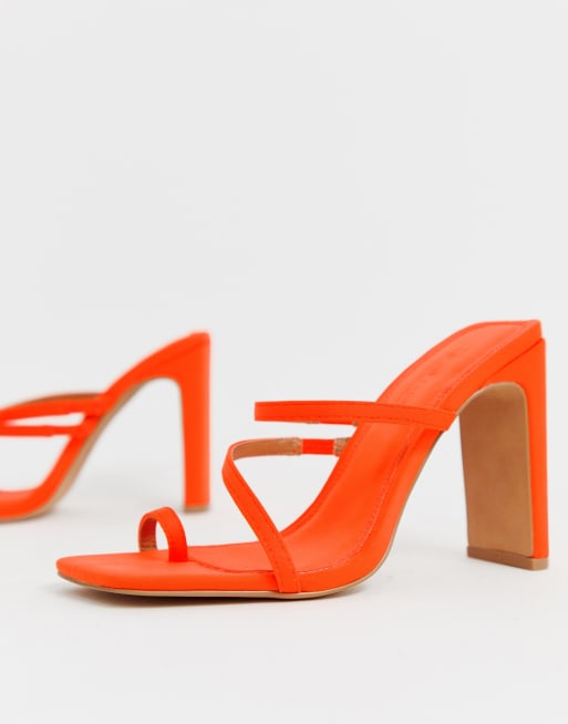 Neon orange block clearance heels, Public Desire Alia Neon Orange Clear Detail Heeled Sandals Lyst clearance