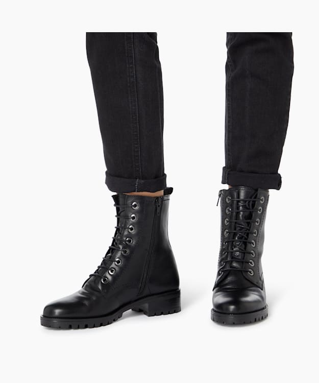 Dune Phyllis Leather Double Buckle Lace Up Boots Black