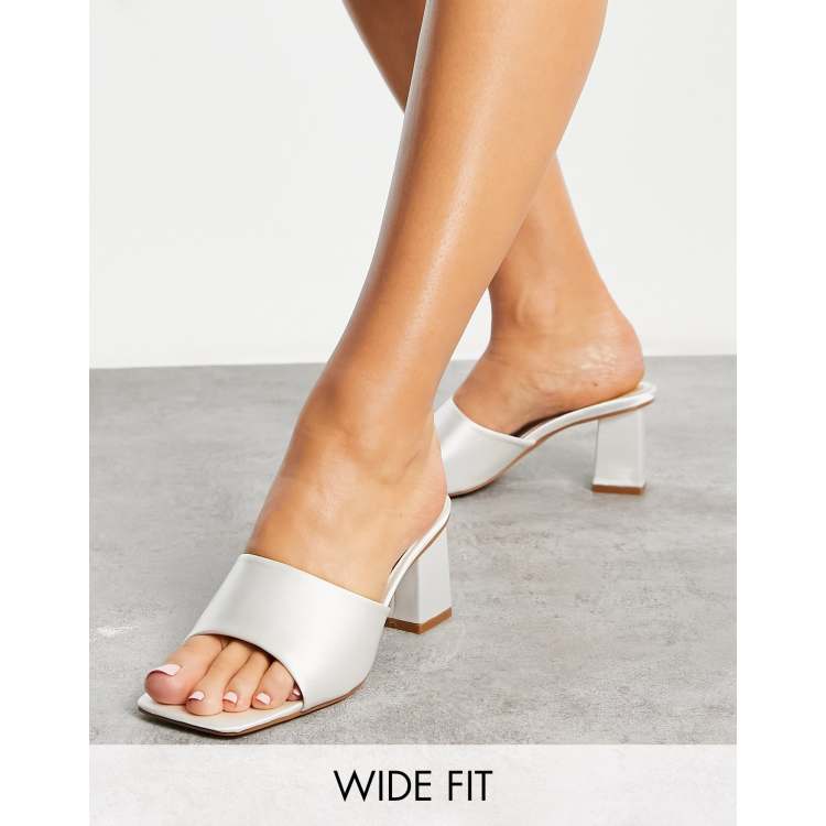 Be Mine Bridal Wide Fit Pia heeled mules in ivory satin ASOS