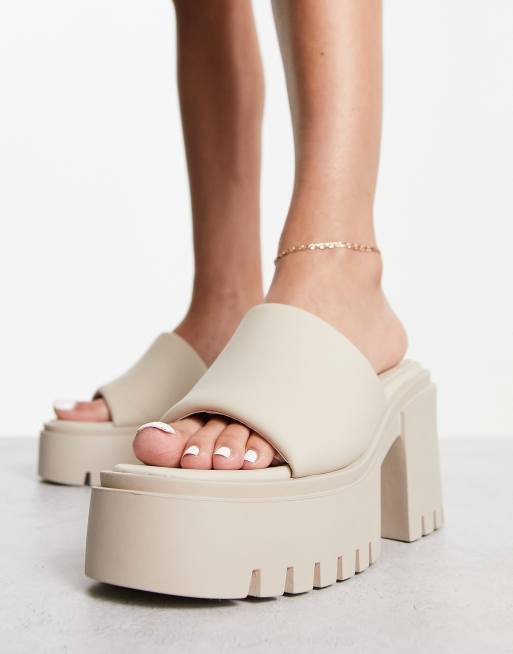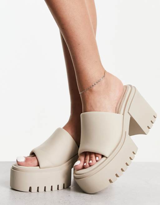Chunky clearance mule heels, Public Desire Sabeena chunky heeled mules in off white clearance