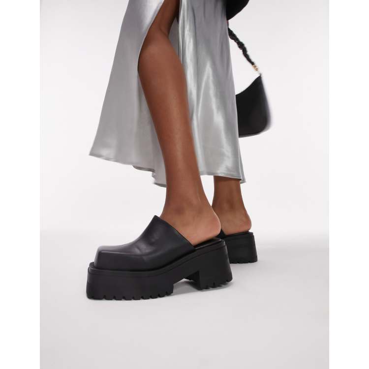 Platform clogs and clearance mules, Topshop Luna premium leather chunky clog mule in black ASOS clearance