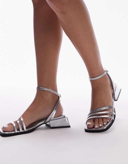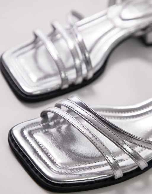 Topshop Wide Fit Ash two part mid heel sandal in silver