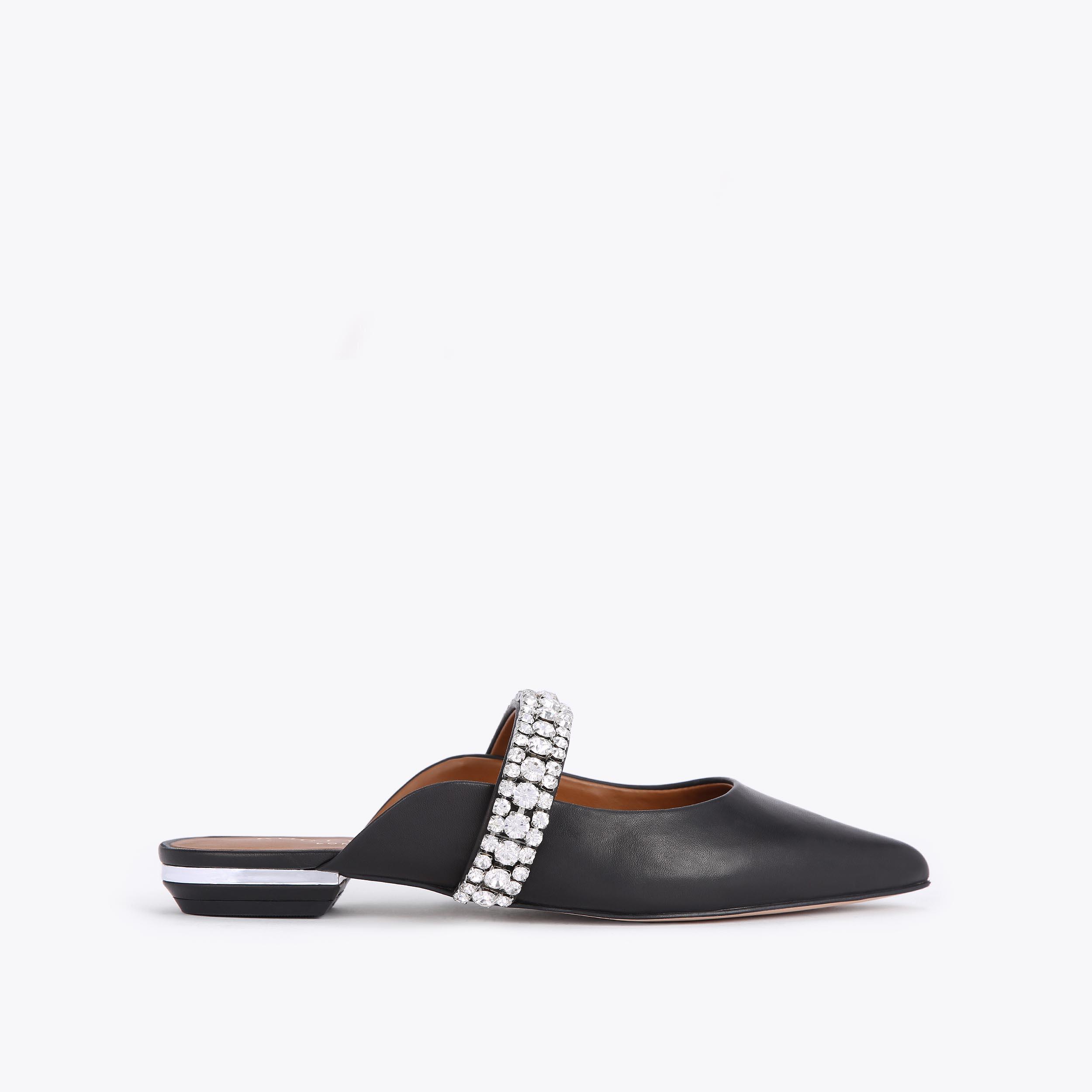 PRINCELY Black Leather Crystal Strap Flat Mules by KURT GEIGER LONDON