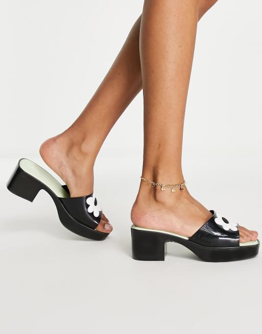 Melissa x Lazy Oaf daisy heeled mules in black ASOS