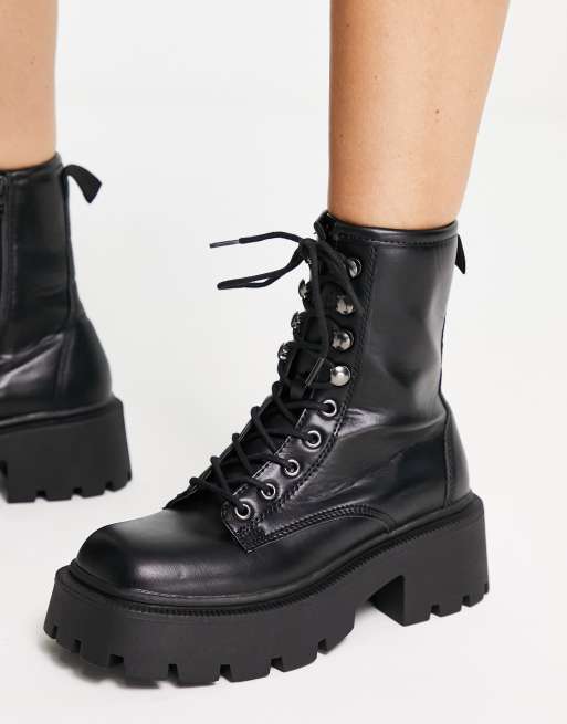 Truffle Collection Wide Fit square toe chunky lace up boots in