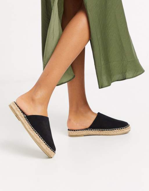 ASOS DESIGN Journey suede espadrille mules in black