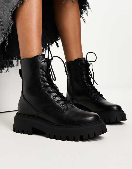 Black Pu Lace Up Biker Boot Shoes PrettyLittleThing