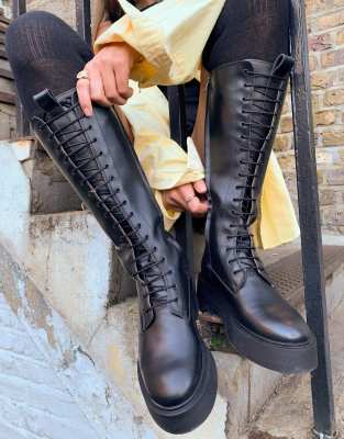 Tall combat lace clearance up boots, Cipriata GABRIELA Ladies Lace Up Tall Boots Black Brush Shuperb clearance