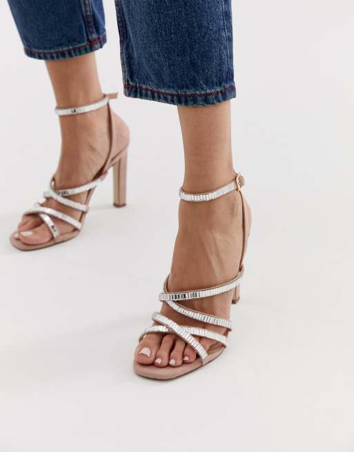 Silver diamante strappy clearance heels, Block Heels Heeled Sandals XY London clearance