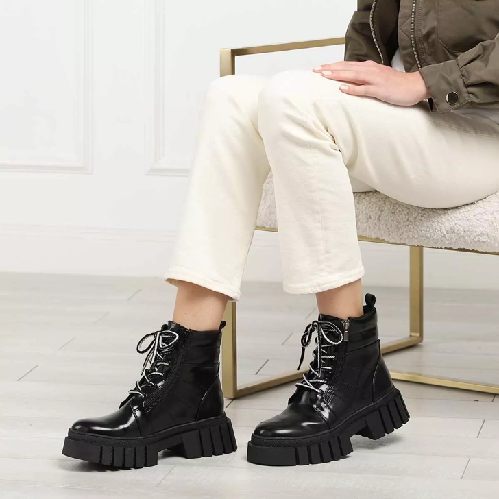 Steve Madden Forecast lace front chunky boots in black ShopStyle