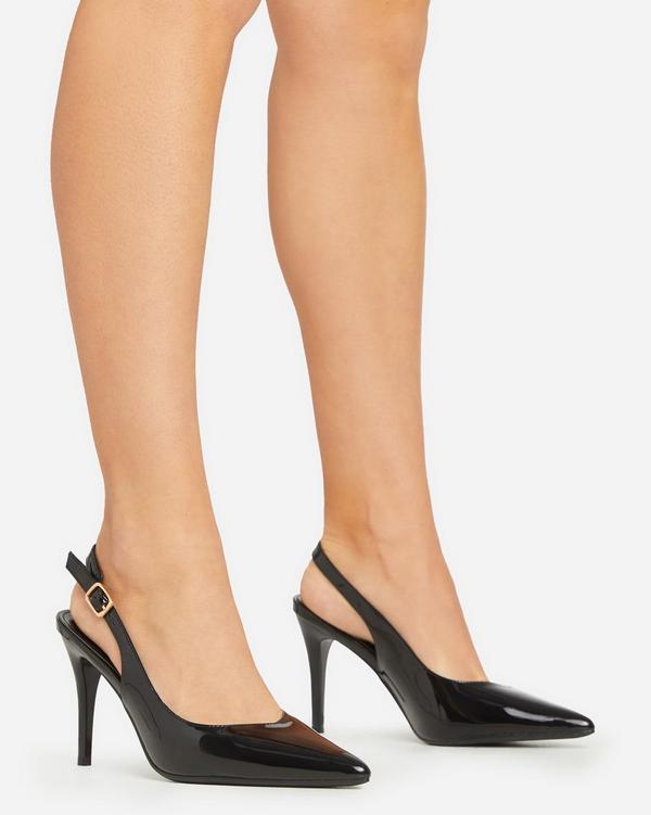 Felicity Pointed Toe Slingback Court Heel In Black Patent EGO
