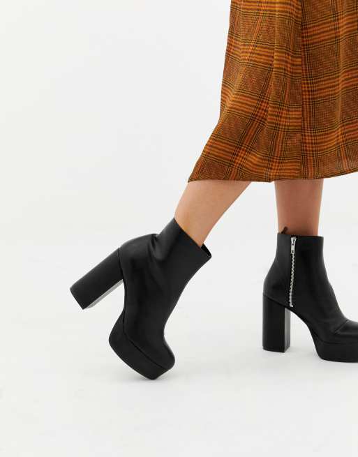 Monki zip heeled platform boot in black