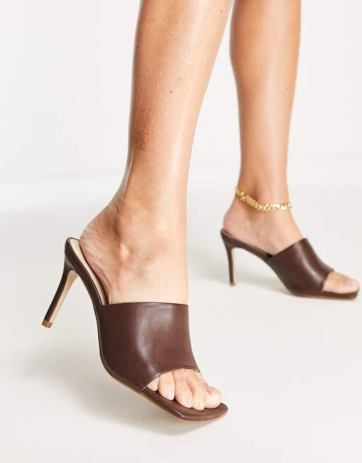 Missguided mule heeled sandals in chocolate faux leather ASOS