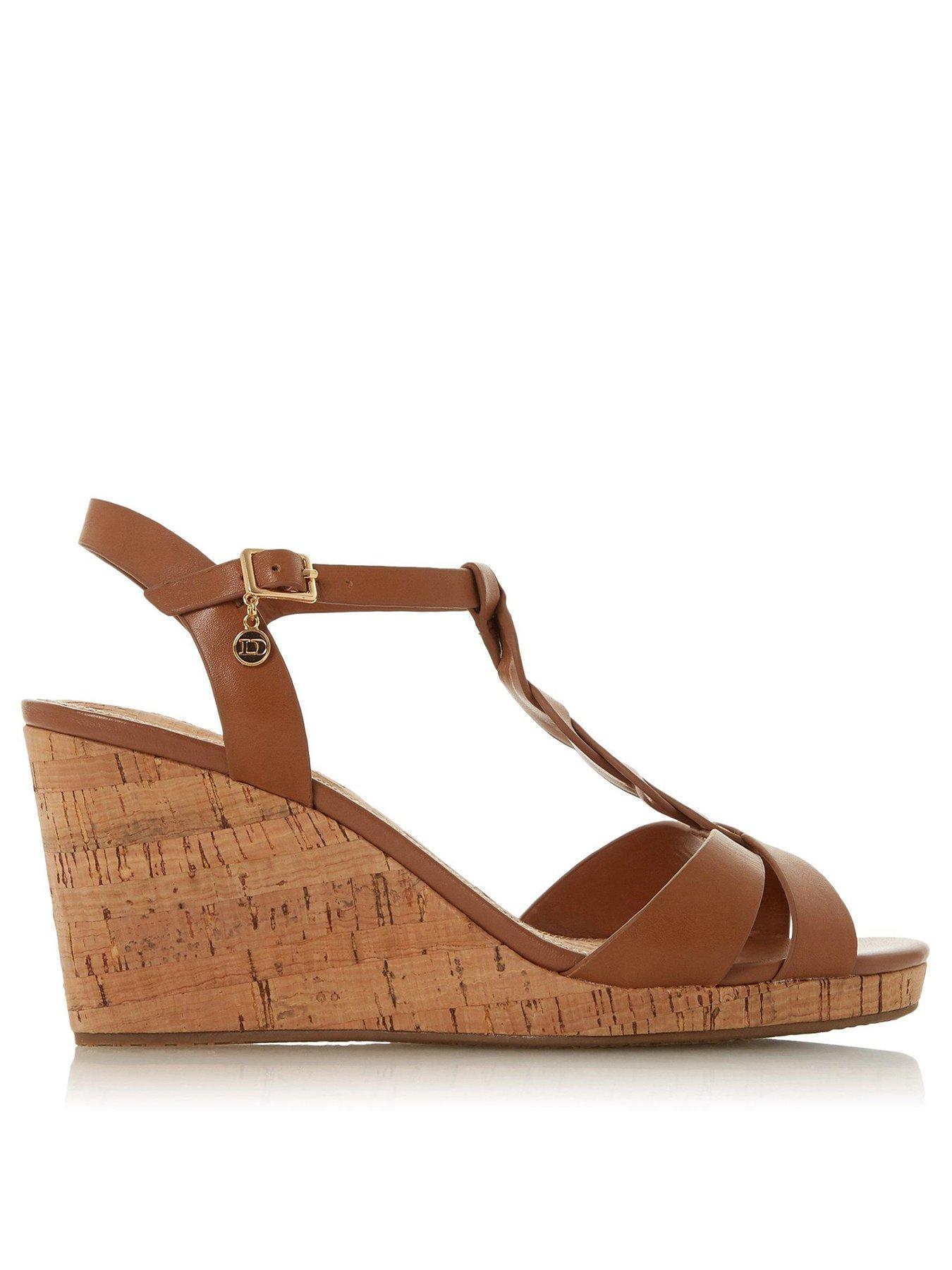 Dune London Koala Tan Plait T Bar Strap Cork Wedge Sandal very