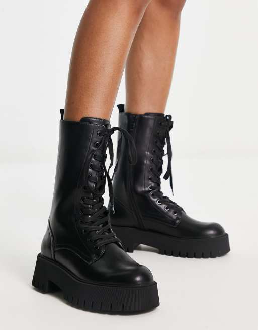 Mid calf biker clearance boots, Barry Multi Pocket Buckle Detail Mid Calf Biker Boot In Black Faux clearance