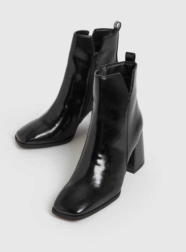 Womens Office Amala Heeled Square Toe Ankle Boots Black Leather
