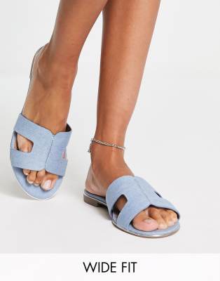 Dune London Wide Fit loopy slip on flat sandals in blue denim ASOS