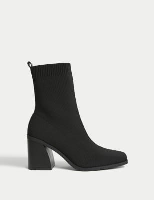 Black sock block clearance heel boots