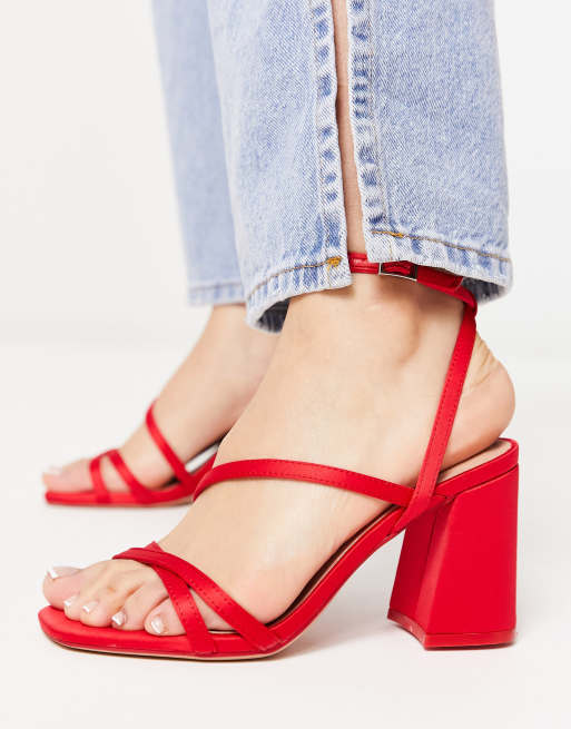 Red strappy block clearance heels
