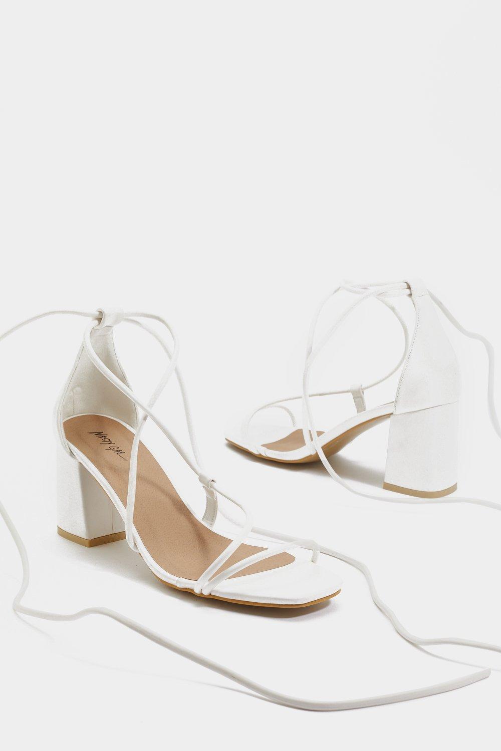 Lace up block clearance heels white, PrettyLittleThing White Pu Toe Detail Lace Up High Block Heeled clearance
