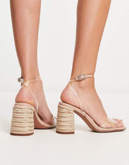 Asos clear block clearance heels, Truffle Collection Wide Fit clear heeled sandals in beige ASOS clearance