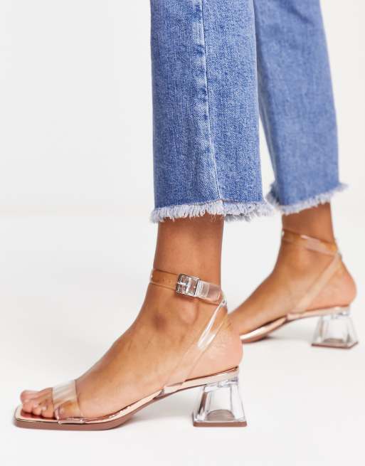 ASOS DESIGN Hopeful block heeled sandals in clear and rose gold