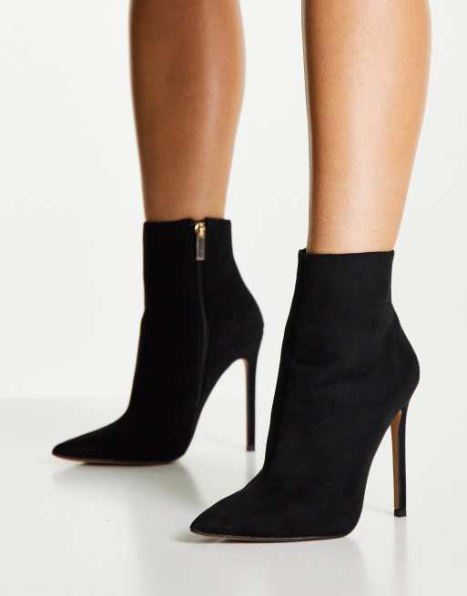 Black suede stiletto clearance boots, Black Faux Suede Slouchy Heeled Ankle Boots Leightyn clearance