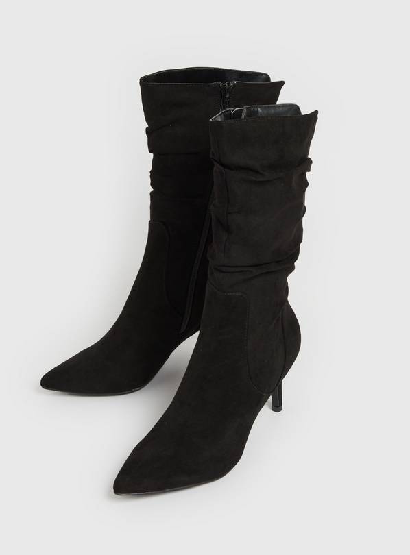 Buy Black Faux Suede Ruched Calf Stiletto Boots 4 Boots Tu