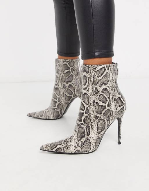 Topshop pointed snakeskin stiletto boots in grey ASOS