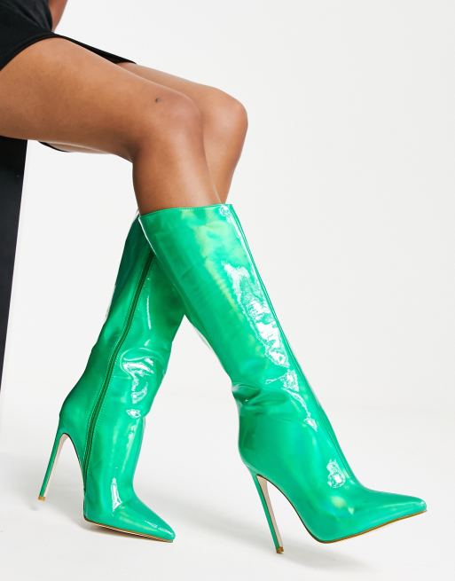 Nora Pointed Toe Zip Fastening Knee High Stiletto Heel Long Boots in Green