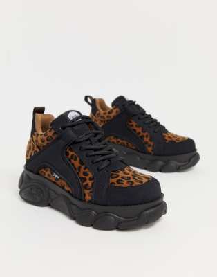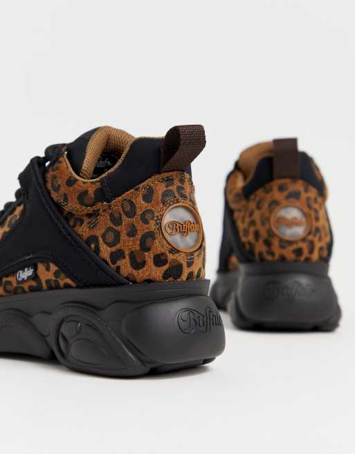 Buffalo colby exclusive low clearance platform chunky trainers in leopard