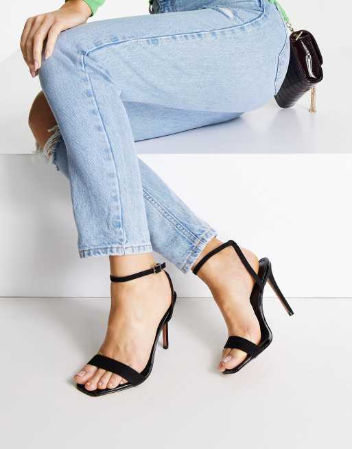 Black barely there clearance heels wide fit, ASOS DESIGN Wide Fit Neva barely there heeled sandals in black clearance