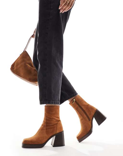 ASOS DESIGN Wide Fit Region suede mid heel boots in tan