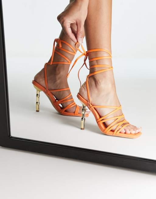 Bamboo Heel Tie Around Pumps Orange