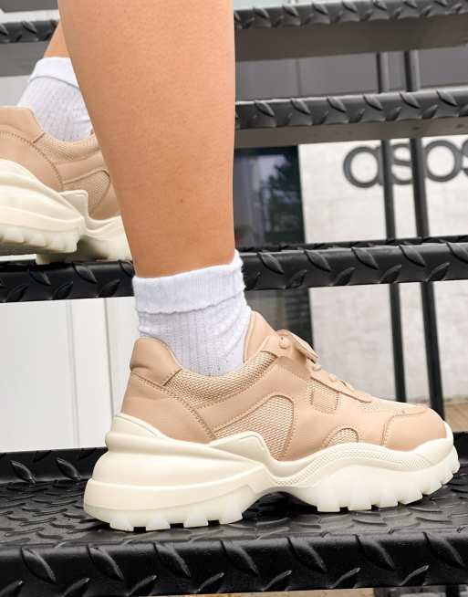 Nude clearance chunky trainers, NA KD slim strap chunky trainers in beige clearance
