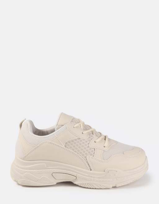 Bershka Lace Up Chunky Trainers in Natural for Men Lyst