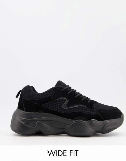 ASOS DESIGN Wide Fit Divine chunky trainers in black ASOS