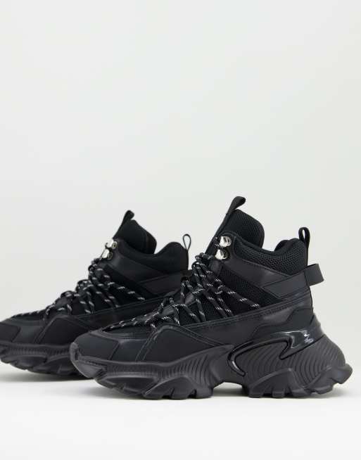 ASOS DESIGN District chunky hiker trainers in black drench