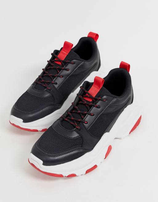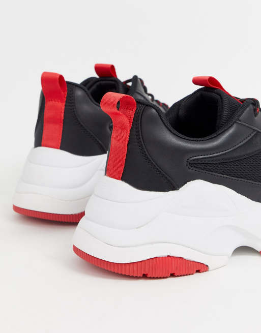 Black and red clearance chunky trainers