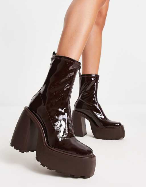 Bershka clearance patent boots, Black Patent Block Heel Ankle Boots CHARLES KEITH UK clearance