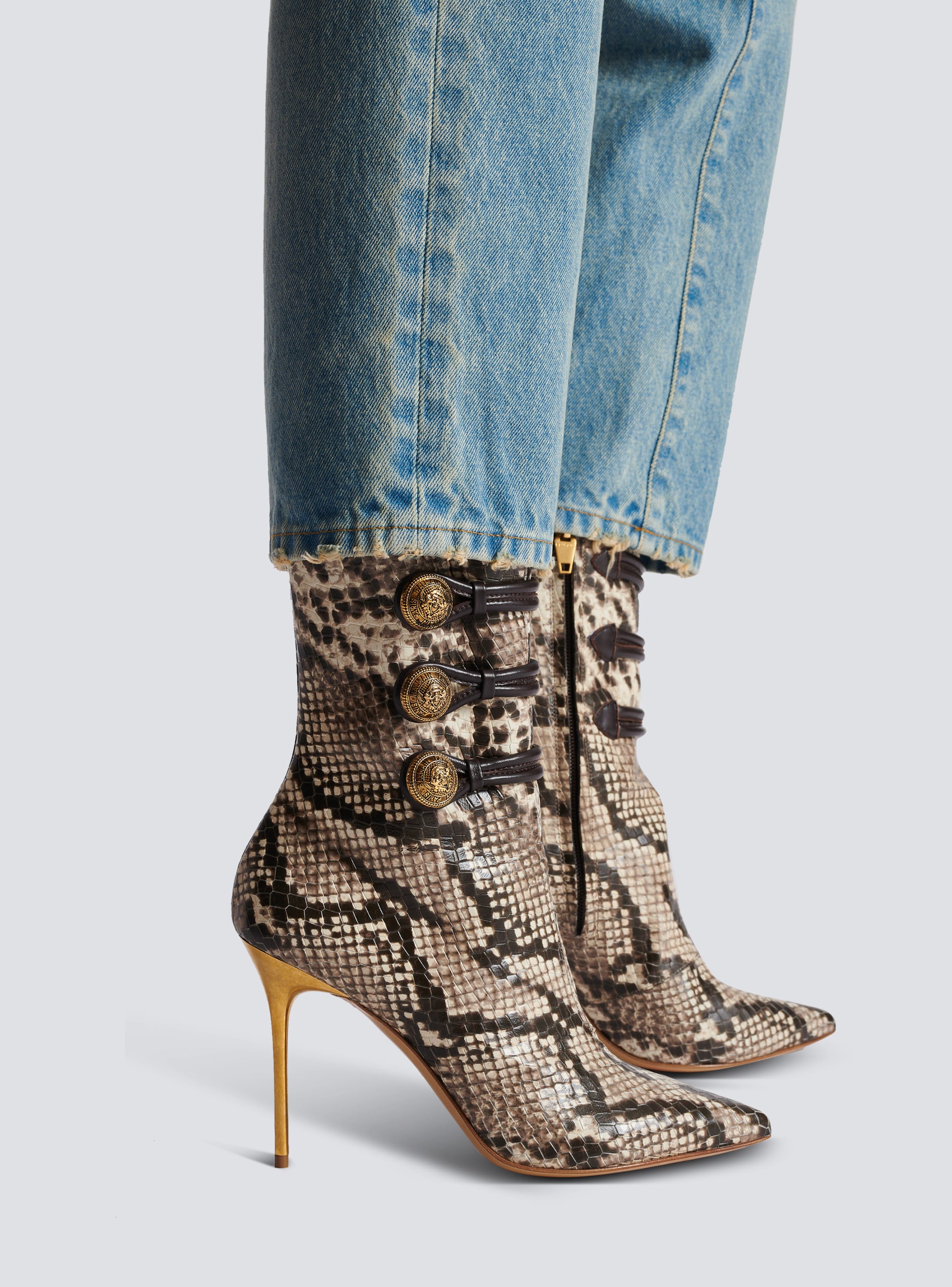 Snake print heeled clearance boots, Alma snakeskin effect leather ankle boots brown Women BALMAIN clearance