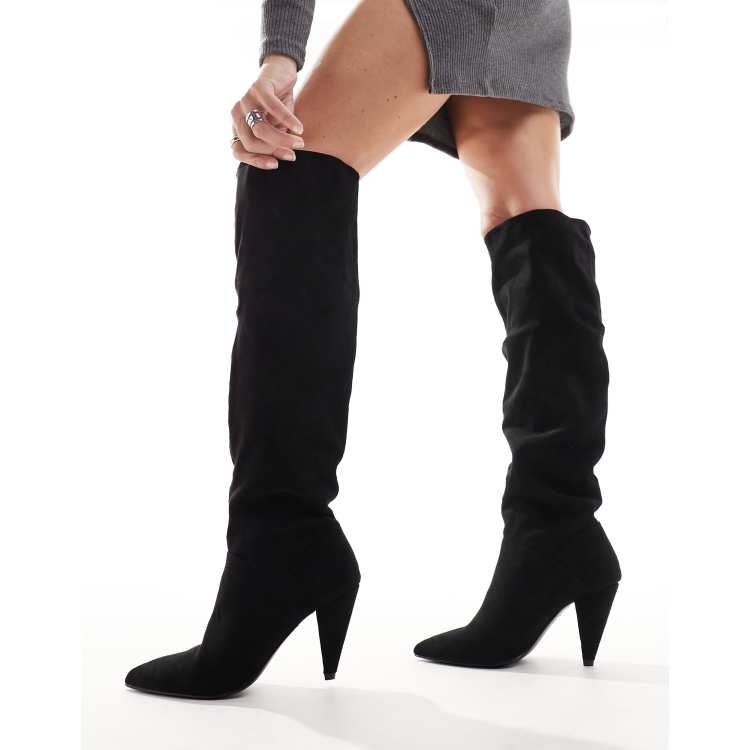 ASOS DESIGN Clove cone heel slouch knee boots in black micro