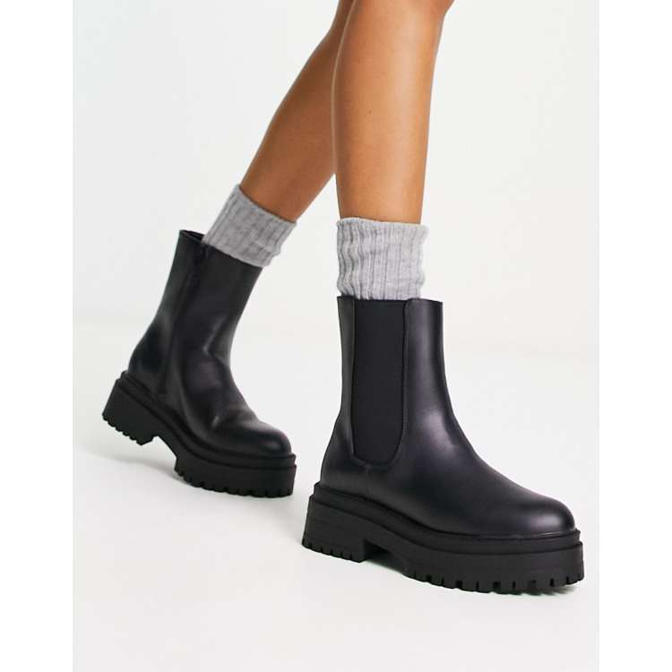 New Look flat chunky chelsea boot with cleated sole in black ASOS