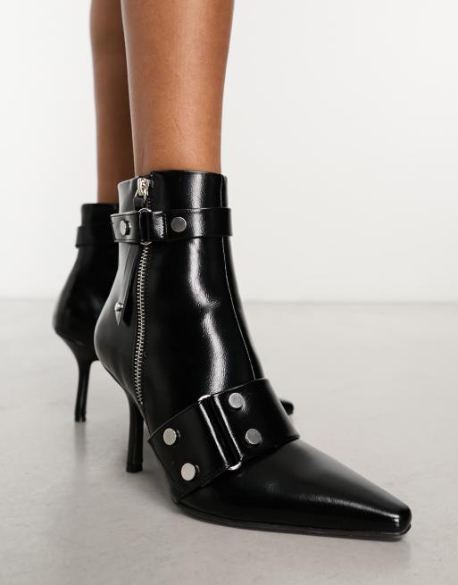 River Island heeled ankle boot with studded toe in black ASOS