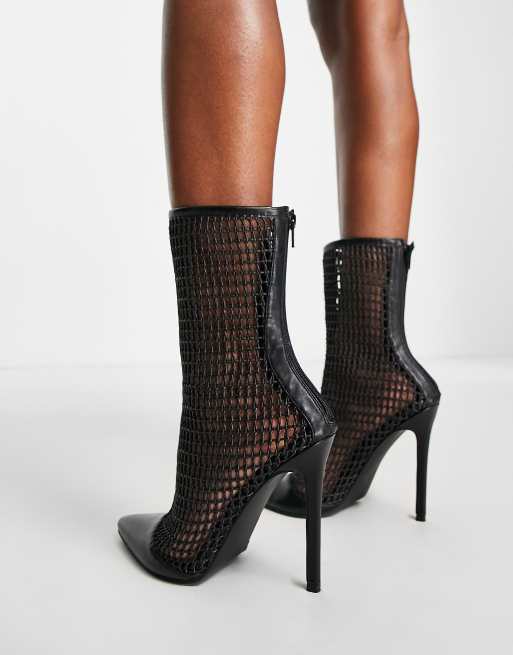 ASOS DESIGN TTYA high heeled mesh boots in black