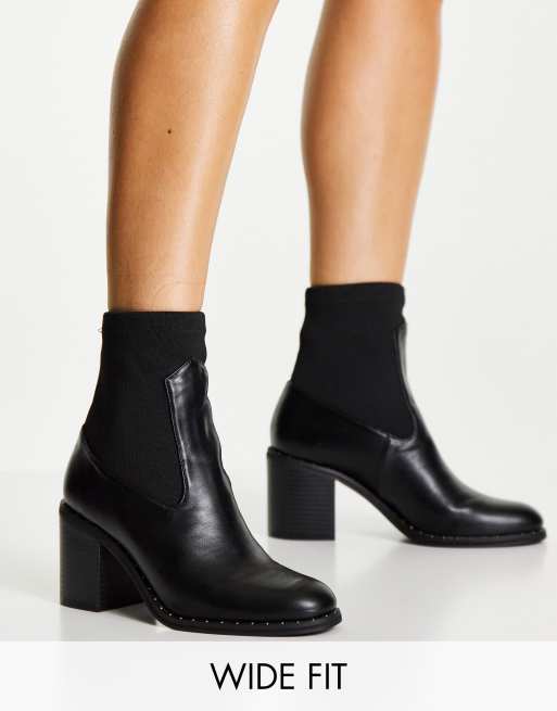 ASOS DESIGN Wide Fit Ruby studded block heel boots in black