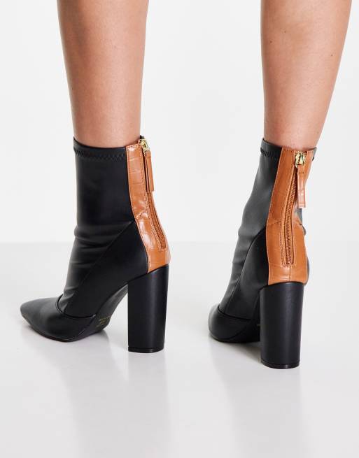 Black Pu Block Heel Point Toe Sock Boot PrettyLittleThing