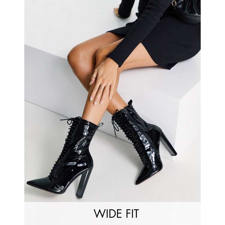 ASOS DESIGN Wide Fit Ellis high heeled lace up boots in black