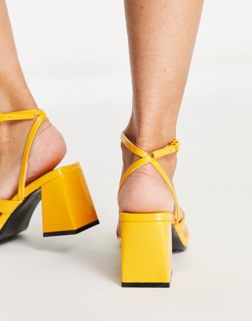 Yellow low block clearance heel sandals, Riverisland Yellow Strappy Block Heel ShoeExtra clearance